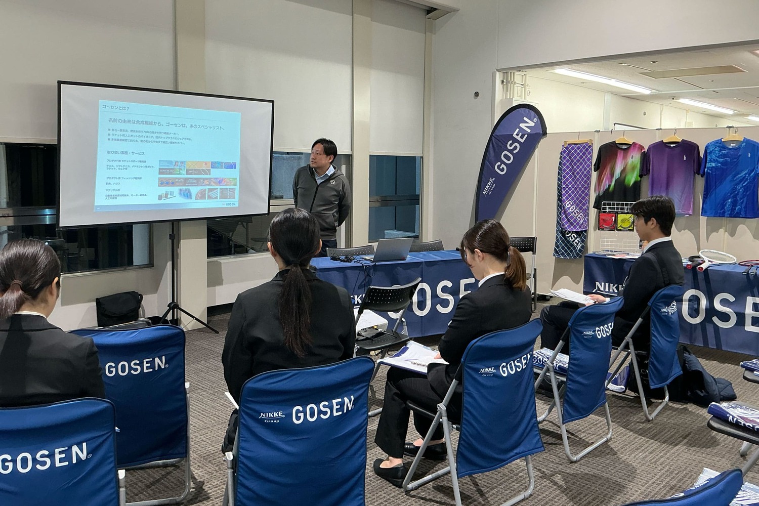 参加企業は、スポーツメーカー、スポーツ卸、プロスポーツチーム、スポーツイベントの企画運営、スポーツ施設の建設業、スポーツマーケティング、スクールユニフォームメーカー、スポーツ総合商社、健康食品メーカーなど、いずれもスポーツや健康に関連する企業です。