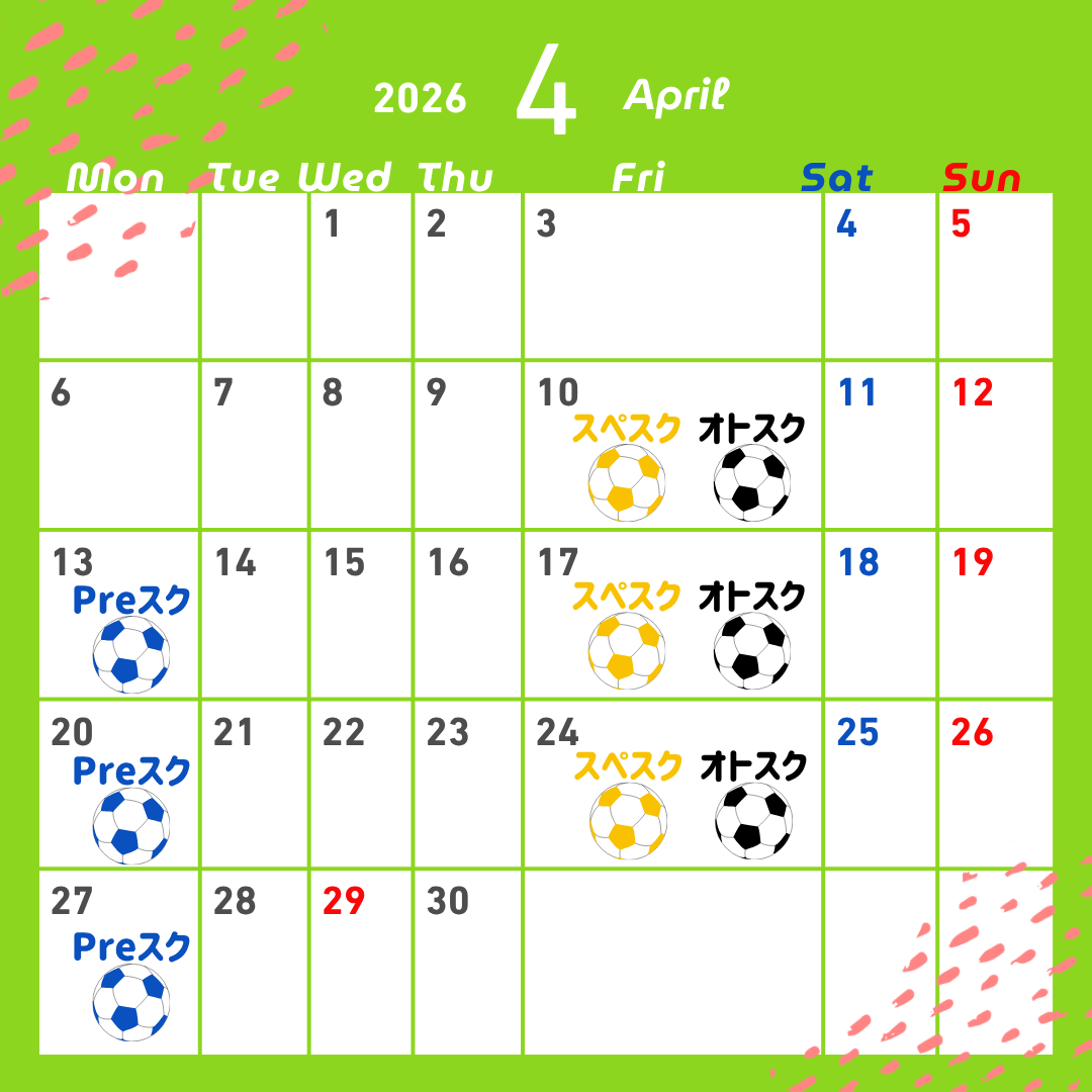 “hummelサッカースクール” 2026(令和8)年4月~6月の予定をお知らせします。